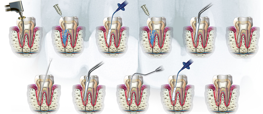 4 - Seanslar arasında diş iyileşene kadar geçici dolgu maddeleriyle dişin üzeri kapatılır. İltihabın üremesinin durduğu anlaşıldıktan ve kök ucundan iltihap gelmesi sona erdikten sonra kanal içerisi özel bir dolgu maddesiyle, kök ucuna kadar doldurulur.